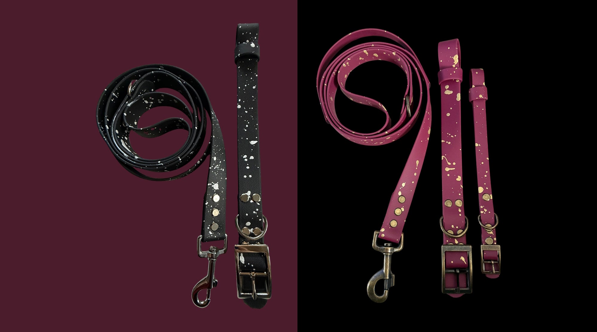 Meet Mulberry Magic and Midnight Frost. Two hand-painted, small-batch collars and leads, crafted to bring a little seasonal (and waterpoof) sparkle to every walk.