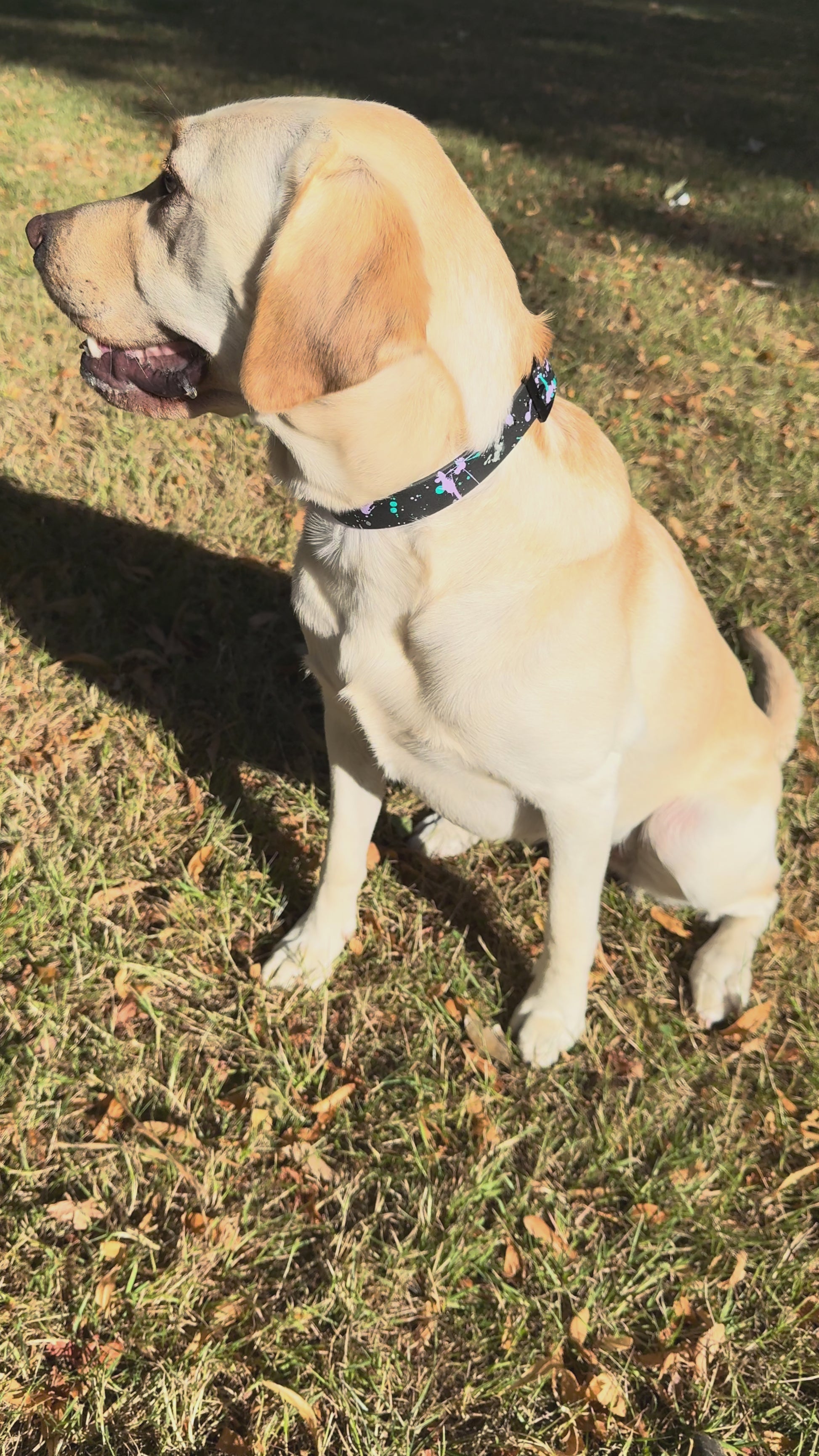 With a jet-black base splattered by hand in dreamy violet, cool turquoise, and shimmering silver, it’s bold, beautiful, and completely unique. Each collar is a mini artwork, no two are the same!